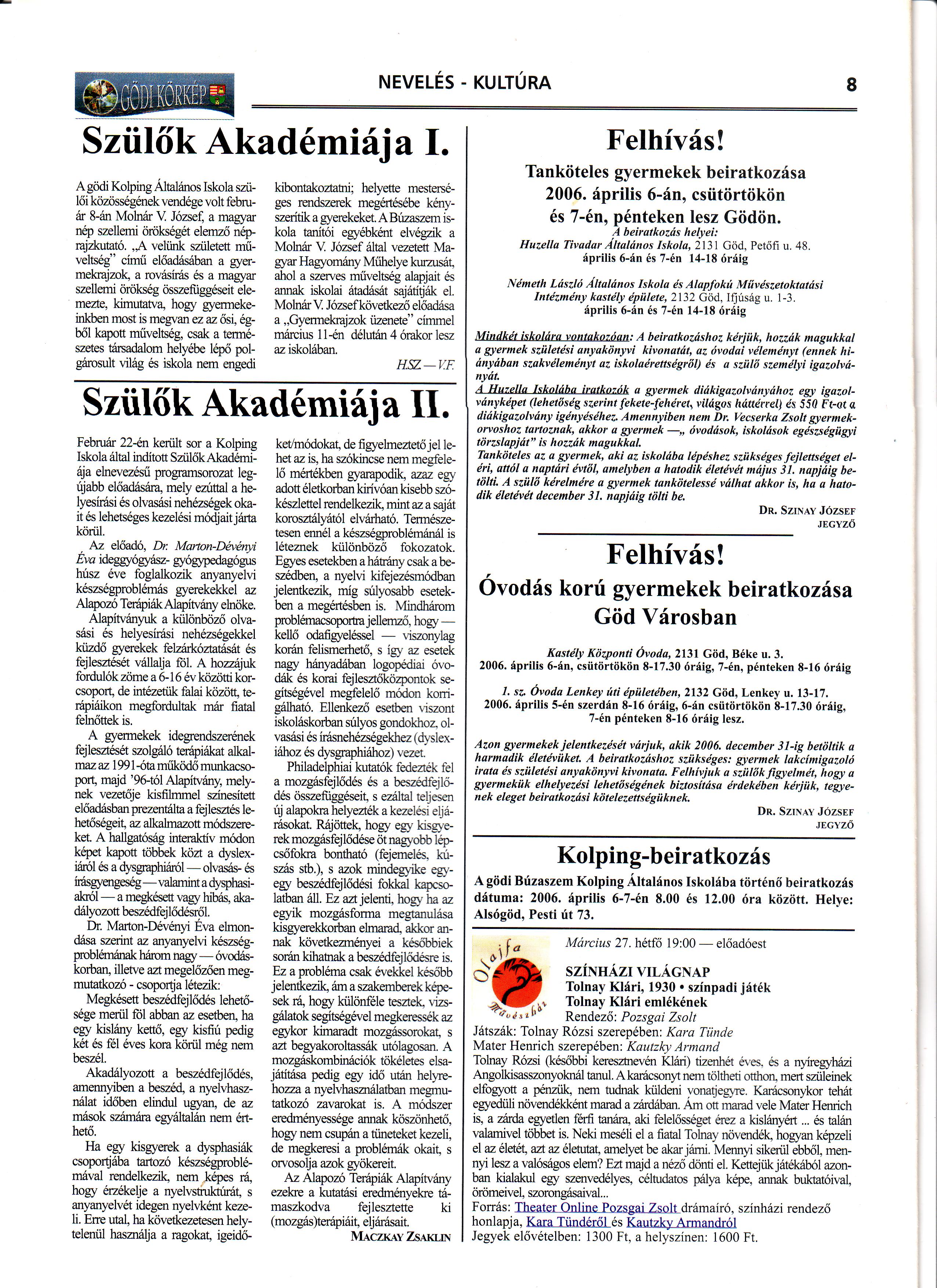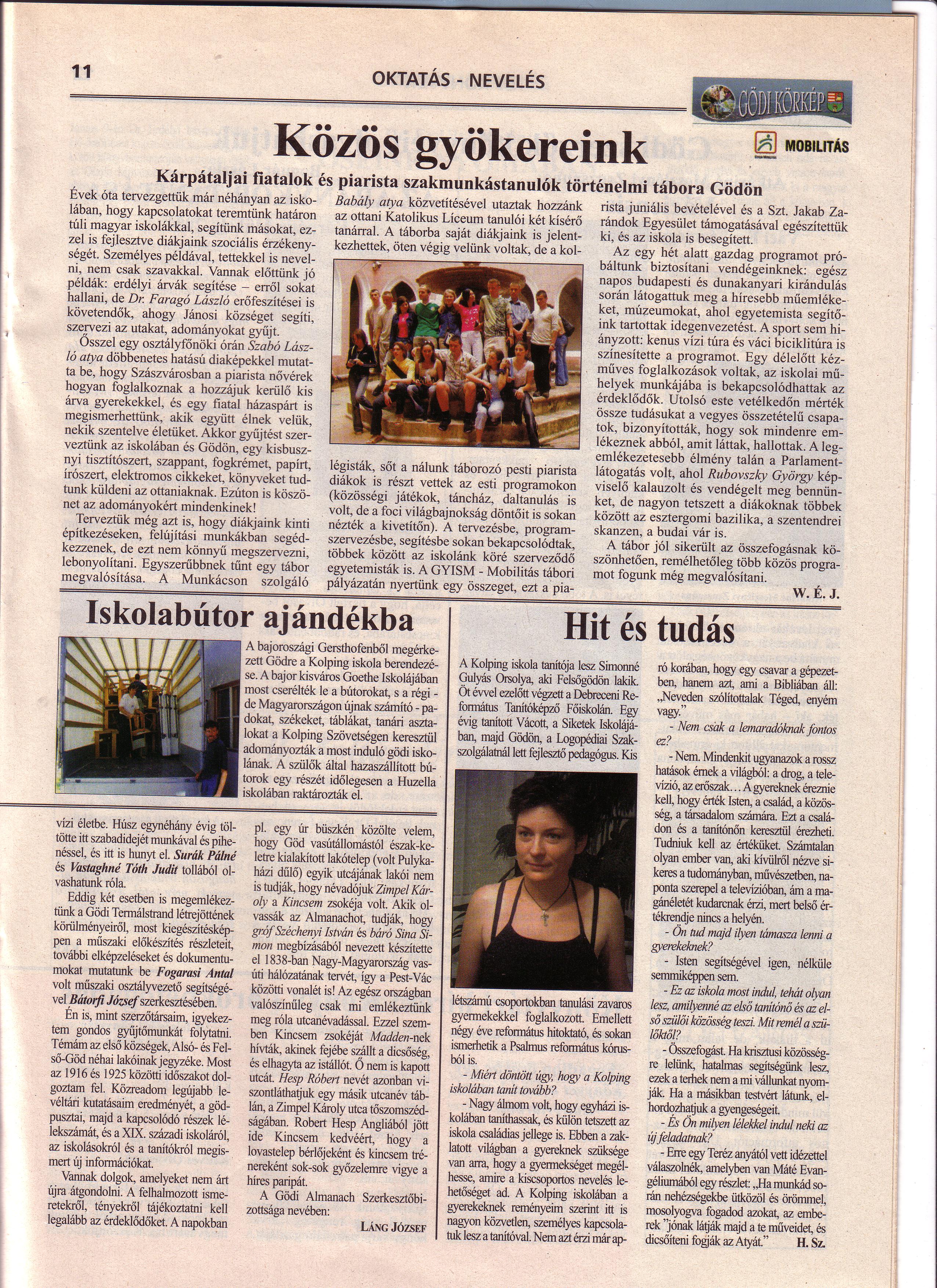 Ebben a könyvtárban az iskoláról megjelent cikkeket időrendi sorrendben olvashatja. (Az elektronikus média és a Gödi Kolping Híradó külön könyvtárban található.)